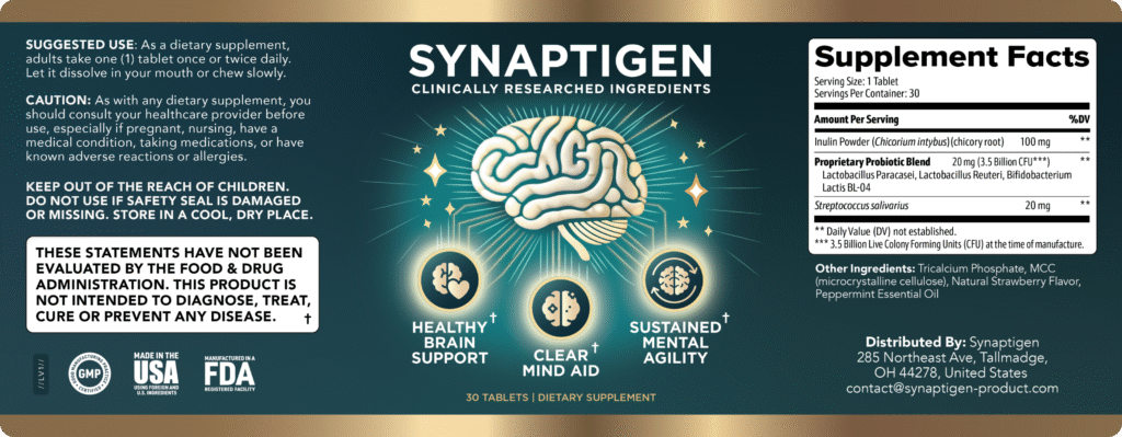 Synaptigen comes in a convenient, melt-in-your-mouth tablet that you can either let dissolve or chew slowly. Simply take one tablet per day to kickstart your brain’s natural recovery process. It’s the easiest step you can take to support clear thinking, sharper memory, and long-term cognitive health without changing a single thing in your daily routine.